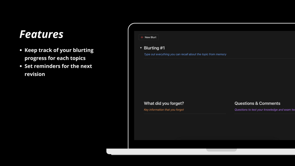 Improved understanding: The Blurting Study Method helps you identify gaps in your knowledge, which you can then focus on filling. This improves your overall understanding of the topic.