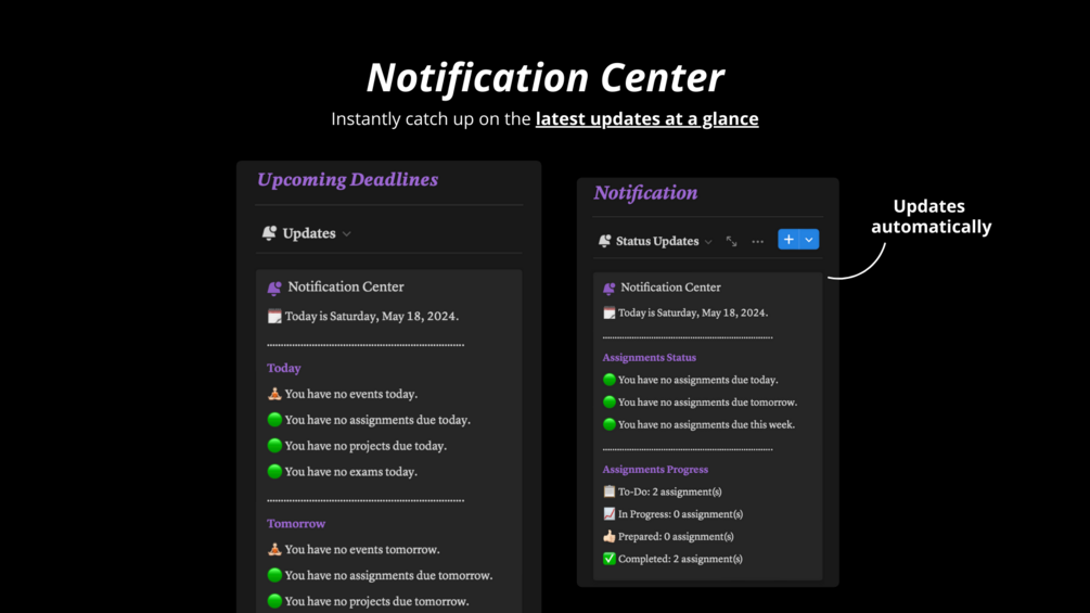 - Notification center (Instantly catch up on the latest updates automatically on your assessments and events at a glance)