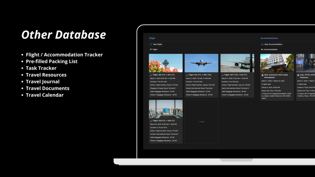 - Advanced itinerary planning -> Database linked to Travel Details database for easy planning (Reference: Image 4 of cover photo)